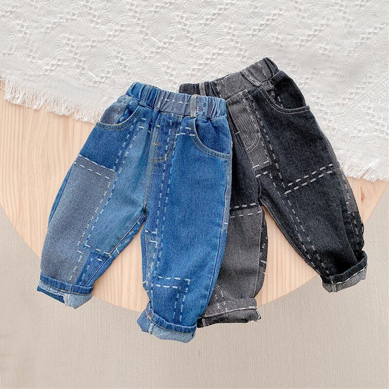 男の赤ちゃんと女の子のパンツ春ソフトコットン子供ズボン子供服 0-6Year 青と黒 ブルー ブラック スプリング 春物 キッズ