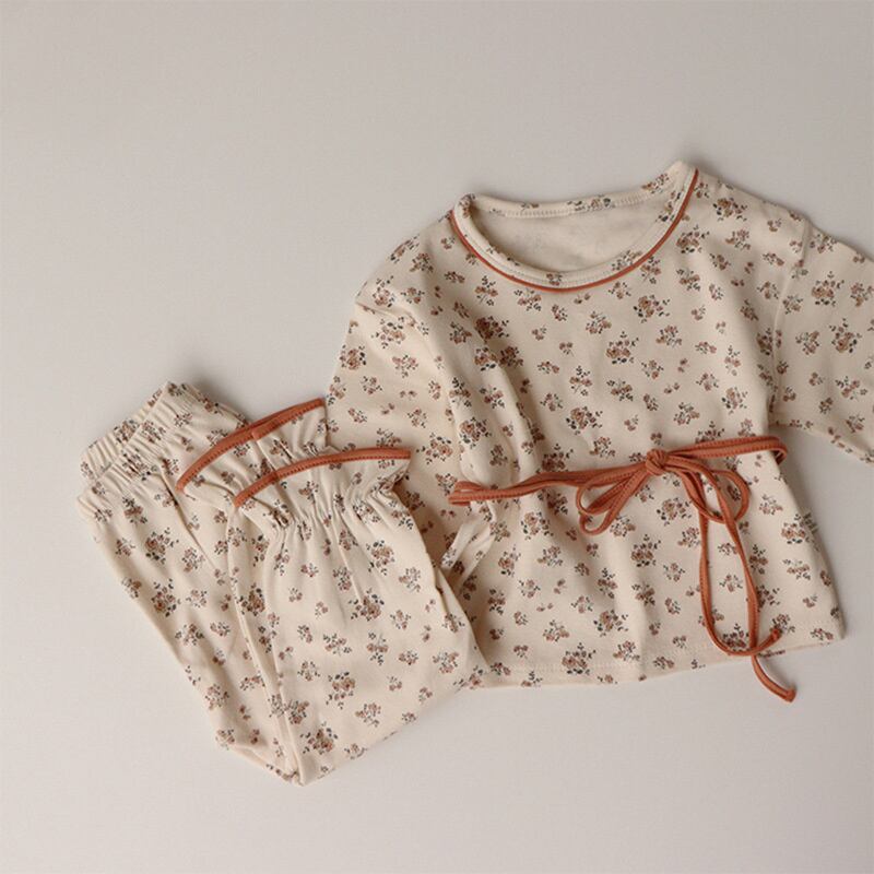 キッズガールパジャマセット長袖スーツ + パンツ 2 個花柄ガール服セット Chidren コットンホームサービスセット ロング
