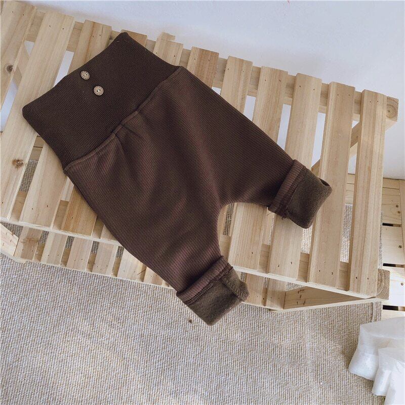 ベビーコットンパンツボタン秋冬フリースパンツ男の子と女の子幼児幼児無地 0-2Y オータム 秋物 ウィンター 冬物 ソリッドカラー