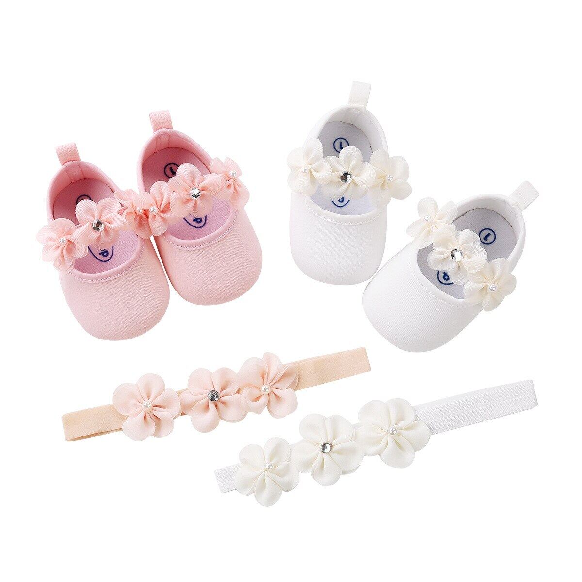 パーティーベビーシューズ新生児幼児コムト春秋のベビーシューズ女の赤ちゃんの靴 + 花カチューシャ 2 ピース/セット スプリング 春物 オータム 秋物 ヘアバンド ヘアアクセサリー フラワーデザイン