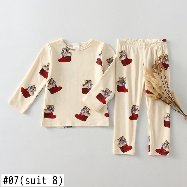クリスマスキッズベビー少年少女子供プリント長袖トップ + パンツキッズベビーホームウェアパジャマスーツ ロング
