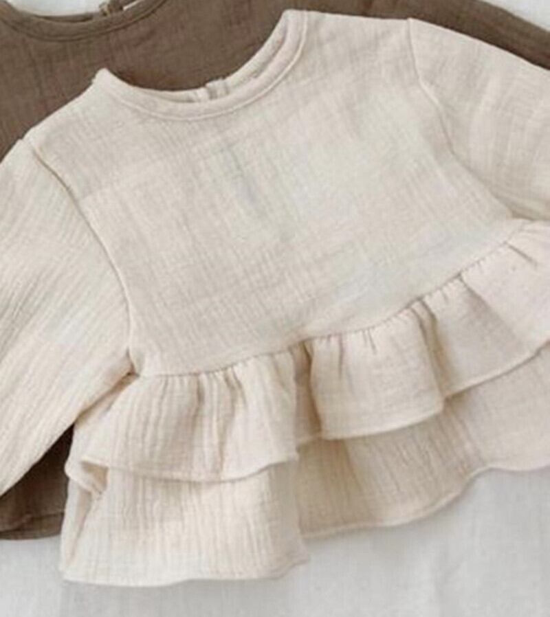 春と秋の女の赤ちゃん Tシャツ幼児蓮の葉レース長袖ソフトコットントップベビー服 0-6Y ロング スプリング 春物 オータム 秋物
