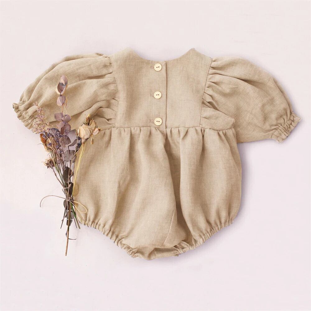 夏の女の赤ちゃん服チェック柄新生児ロンパース 0-2Y コットンリネン女の赤ちゃんワンピースジャンプスーツ幼児服 サマー 夏物