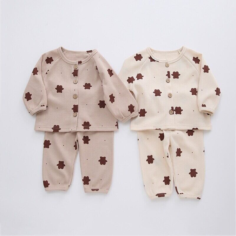 赤ちゃんの少年少女服セット子供服クマプリント幼児秋冬パジャマ幼児服セットベビー 2pc 衣装 オータム 秋物 ウィンター 冬物