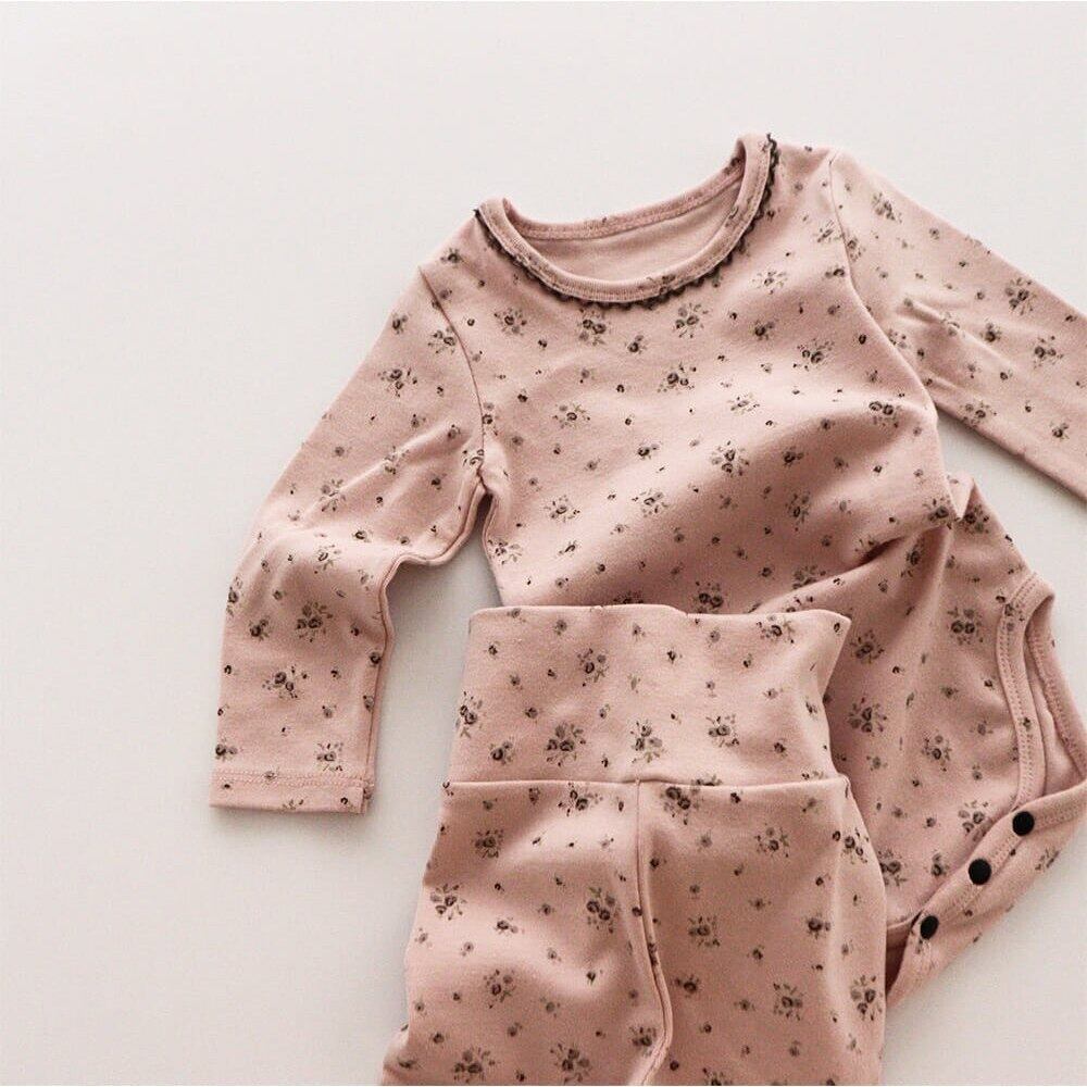 2 個女の赤ちゃん衣装セット新生児女の子服花柄長袖ロンパースボディスーツ + パンツ幼児ガールベビーパジャマ ロング