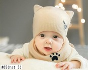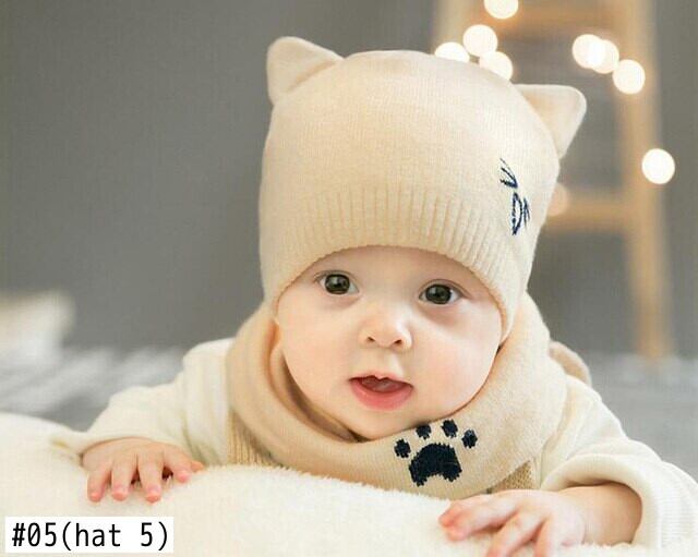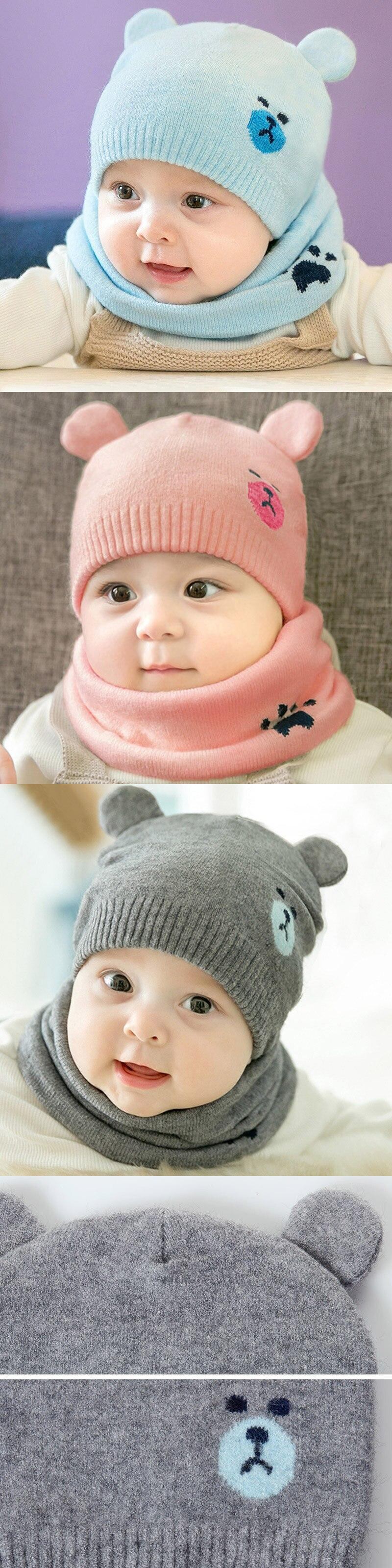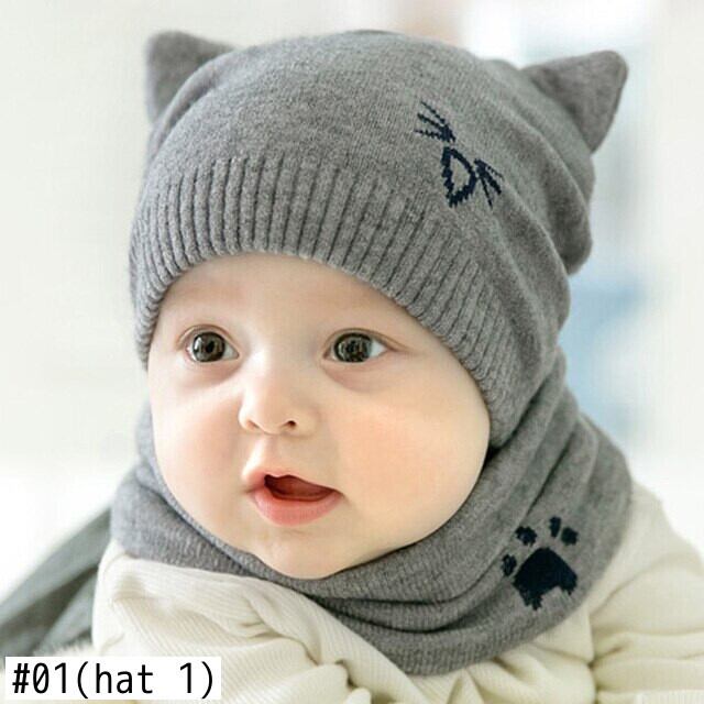 2 個ベビー帽子スカーフセットクマ猫暖かいニットベビー冬帽子キャップボンネット子供帽子少年少女キャップ少年少女かぎ針編みビーニー秋 オータム 秋物 ウィンター 冬物 キッズ ヘアアクセサリー