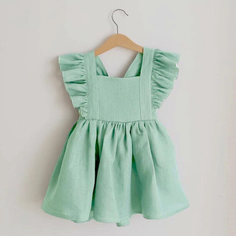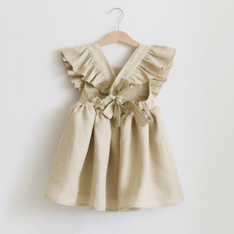 幼児キッズベビーガールドレス夏フリルノースリーブ無地コットンリネン子供パーティードレス女の赤ちゃん 0-6Y ラッフル サマー 夏物 ソリッドカラー