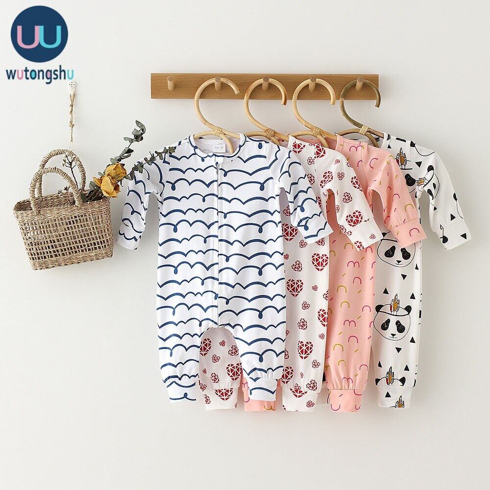 ベビーロンパース長袖綿 100% リネン印刷パターン新生児女の赤ちゃん服ベビーボーイワンピース衣装幼児ロンパース ロング コットン