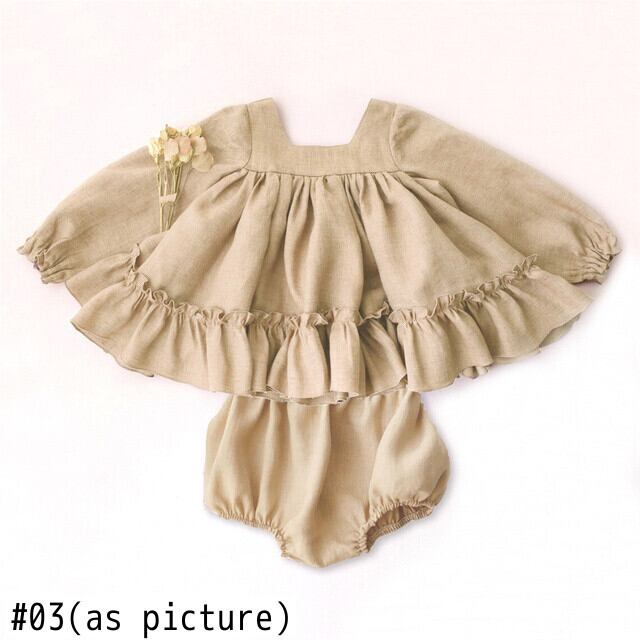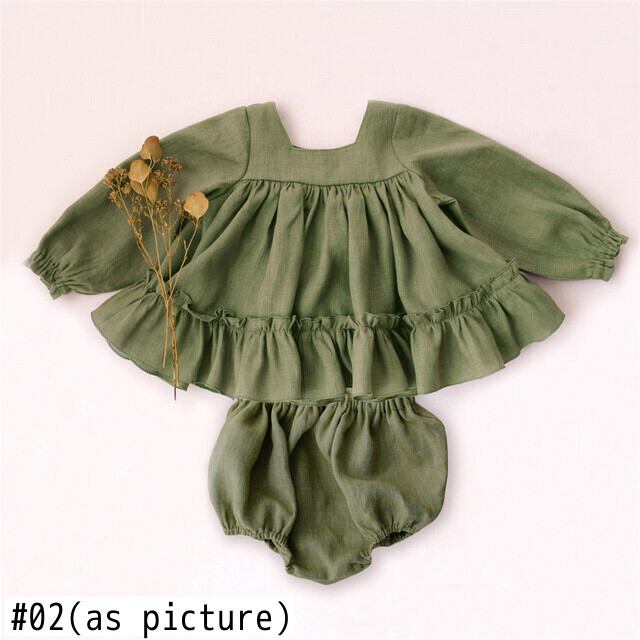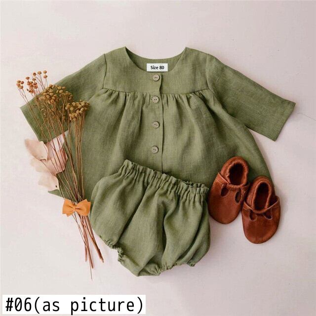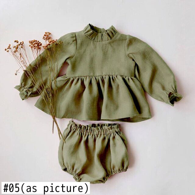新生児服セット春女の赤ちゃんブラウス + ショーツリネンコットン女の子長袖トップス 2 個幼児女の子スーツ ロング スプリング 春物 ブルマー