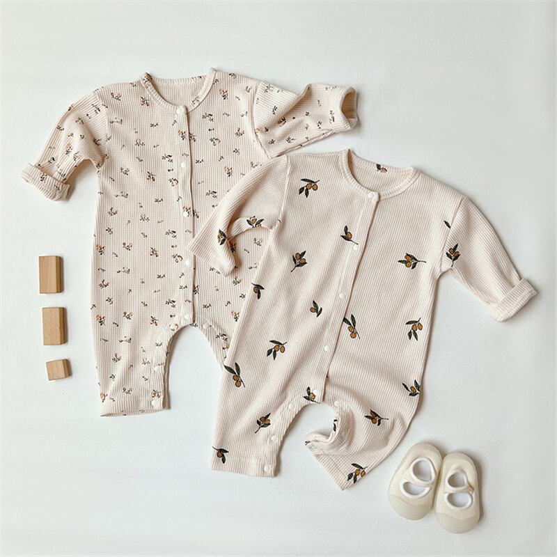 男の赤ちゃんと女の子のジャンプスーツ幼児女の子花長袖ボディスーツボタン春秋ベビーアウター ロング スプリング 春物 オータム 秋物 花柄