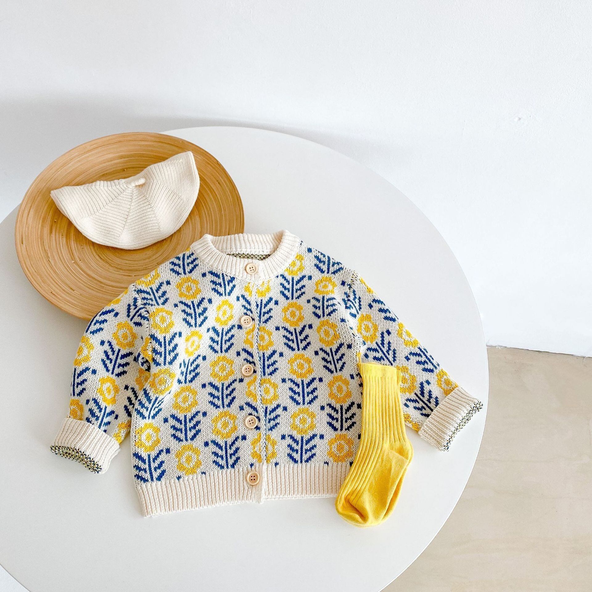 2022 秋生まれ女の赤ちゃんセーターコート幼児甘い花ニットカーディガン女の赤ちゃん服 大人ガーリー スウィート キュート カジュアル オータム 秋物 フラワーデザイン