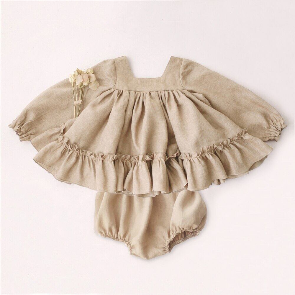 女の赤ちゃん服セット春幼児コットンリネンブラウス + ショーツ幼児の女の子の服 0-2Y 幼児生まれの服 スプリング 春物 ブルマー