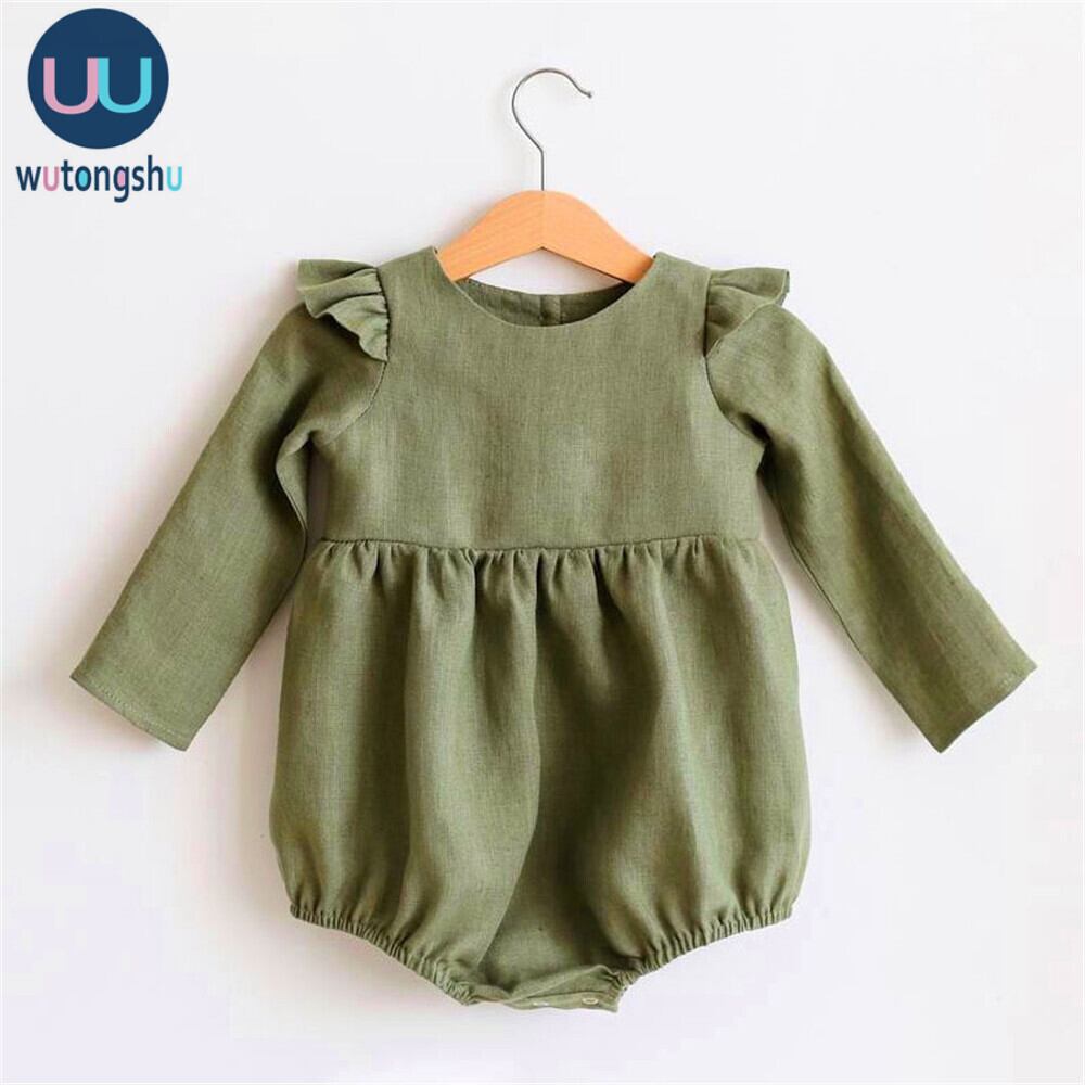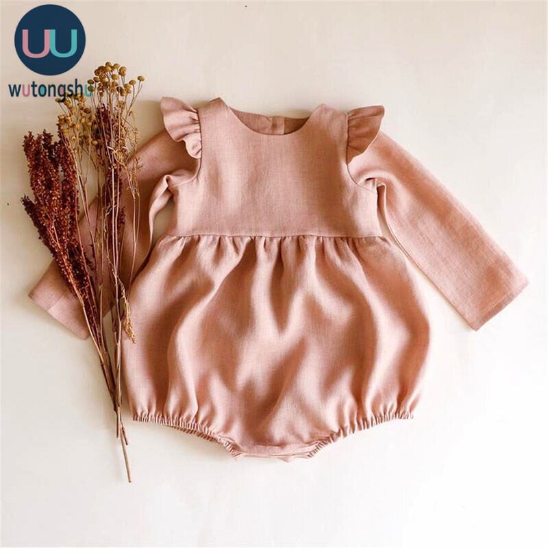 女の赤ちゃんロンパース 無地 長袖 ベビージャンプスーツ 0-24M 綿100% リネン生まれの女の赤ちゃん服 ロング コットン ソリッドカラー