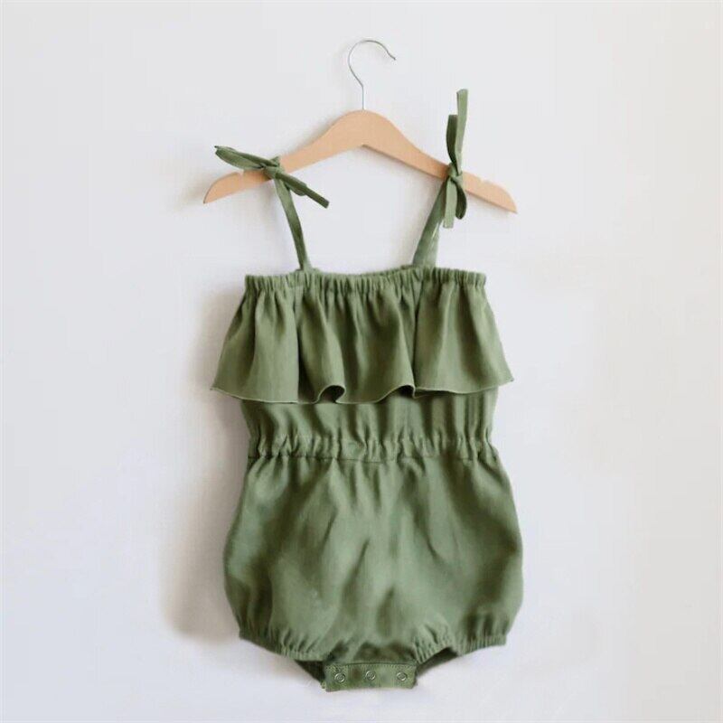夏の女の赤ちゃんロンパース花柄リネンコットンノースリーブ新生児ジャンプスーツ衣装新生児女の子服 サマー 夏物