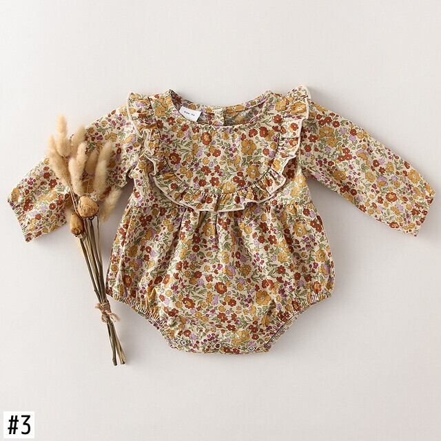 女の赤ちゃんロンパース春シュメール花柄長袖ベビージャンプスーツ綿 0-2Y 生まれの女の赤ちゃん服 ロング コットン スプリング 春物