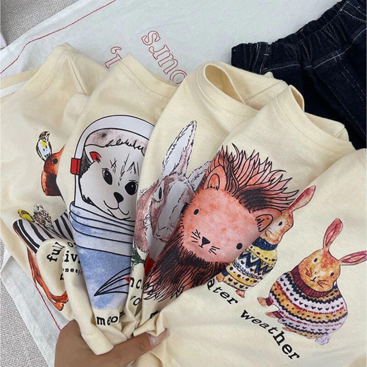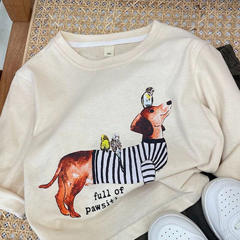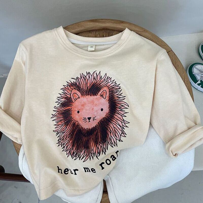 春と秋の子供長袖 Tシャツ幼児漫画プリントトップキッズベビー服 0-8Y ロング スプリング 春物 オータム 秋物