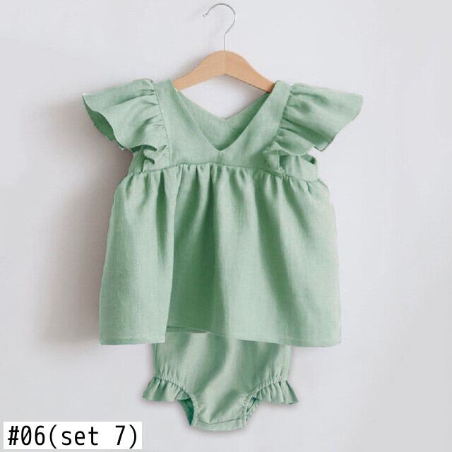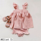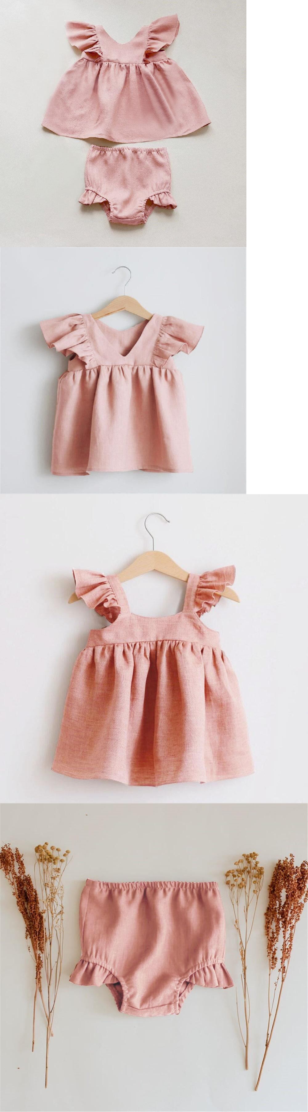 2 個生まれの女の赤ちゃん服夏無地リネンコットン幼児の女の子のドレス + ブルマ生まれ衣装夏 サマー 夏物 ソリッドカラー