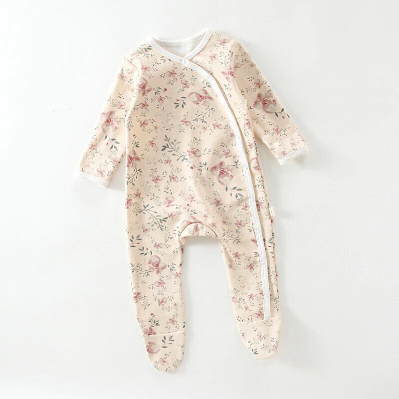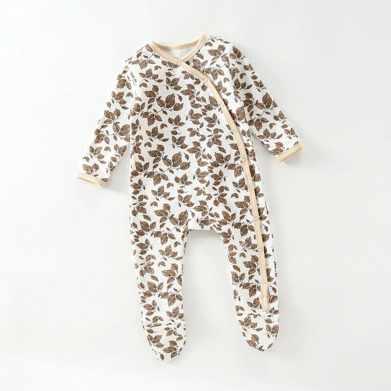 ベビーロンパース Footies パジャマ 0-12M 新生児ガールボーイ服長袖ボタンベビーオーバーオール少年少女服ジャンプスーツ ロング
