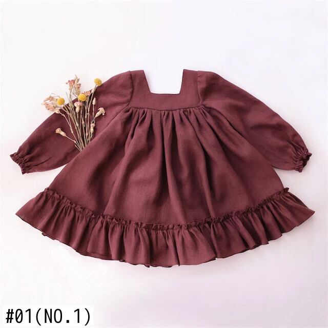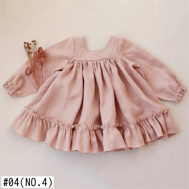 幼児の女の子ドレス春の女の赤ちゃんドレスフリル長袖リネンコットンチュチュスカートドレス女の赤ちゃん 1-5 歳 ロング ラッフル スプリング 春物 パニエ ペチコート