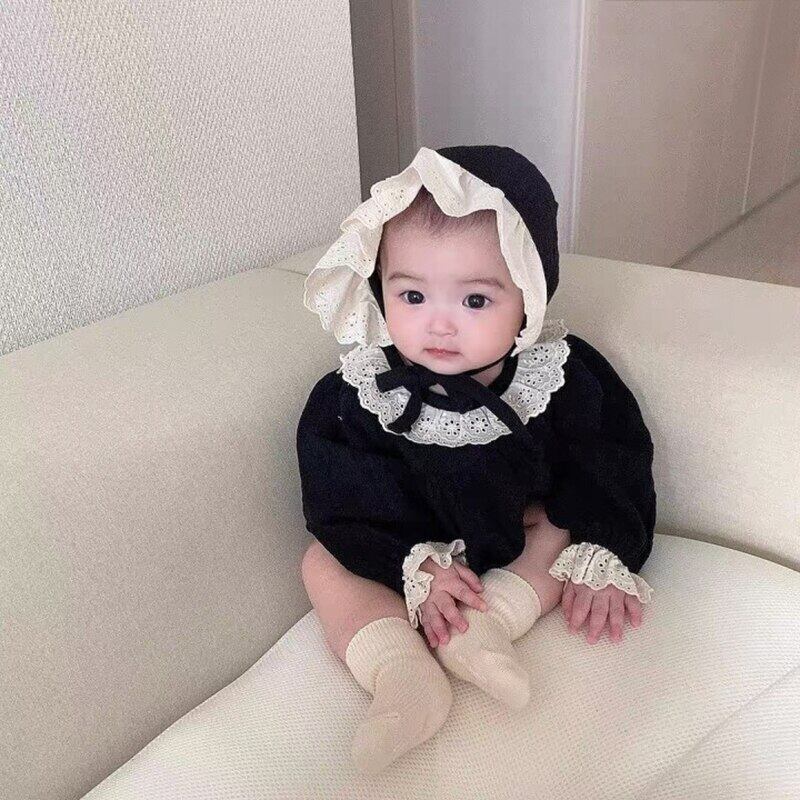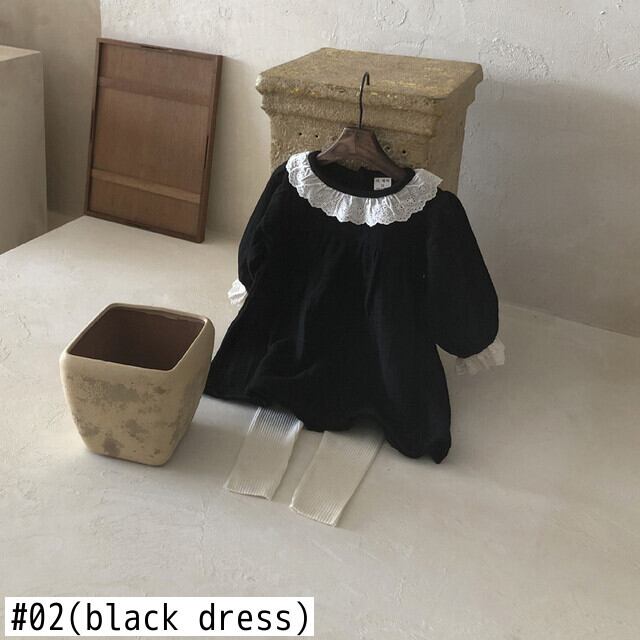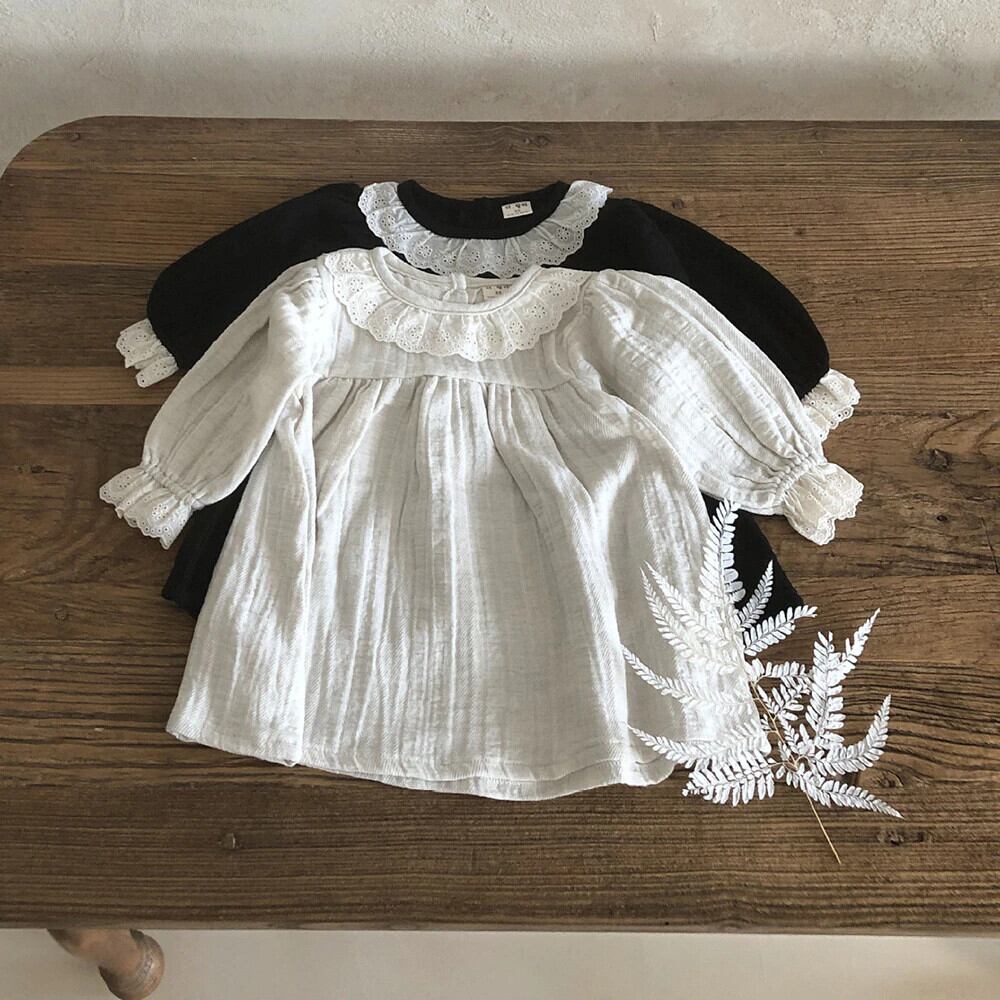 女の赤ちゃんの服 0-5Y 春のレースの綿の長袖白黒幼児の女の子のドレス女の赤ちゃんの服 ロング ホワイト ブラック コットン スプリング 春物