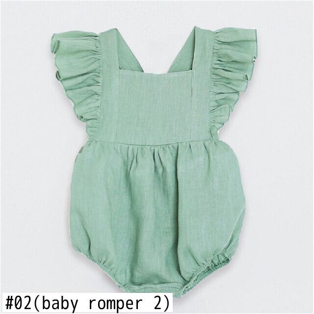 新生児ロンパース夏フリルリネンコットン女の赤ちゃん服幼児女の赤ちゃんジャンプスーツ 0-2Y 女の赤ちゃん ラッフル サマー 夏物