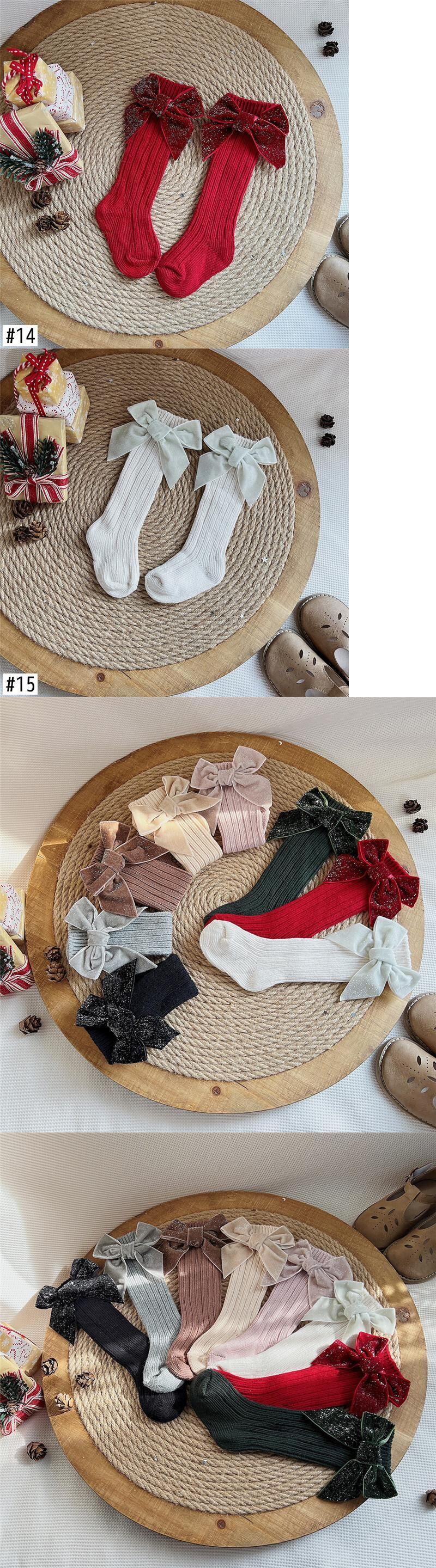 冬の女の赤ちゃんクリスマスロングソックス子供綿ビッグ弓膝靴下ウールレッグウォーマー子供ソフトソックス 0-5Years リボン コットン ウィンター 冬物 キッズ タイツ ストッキング