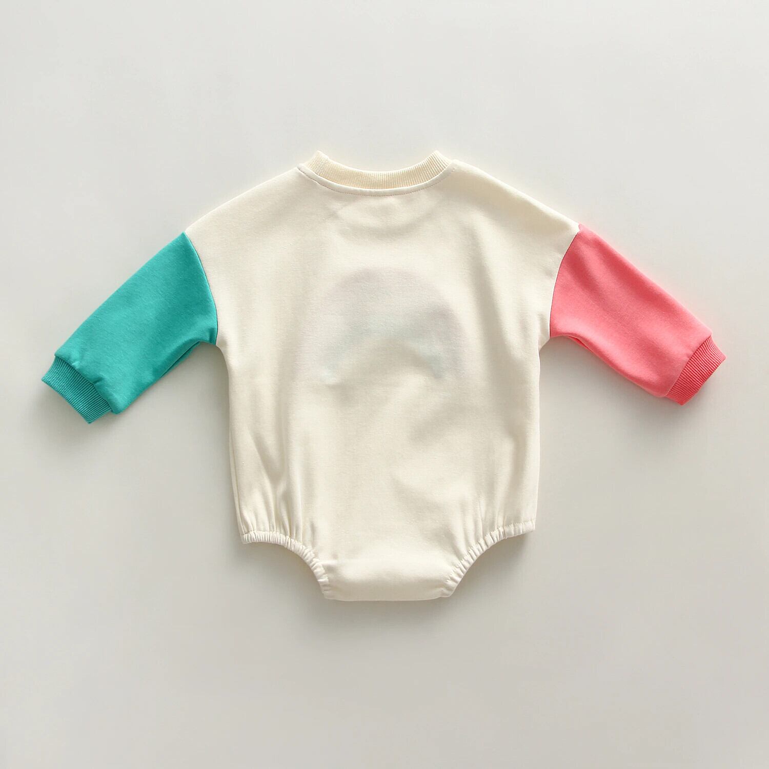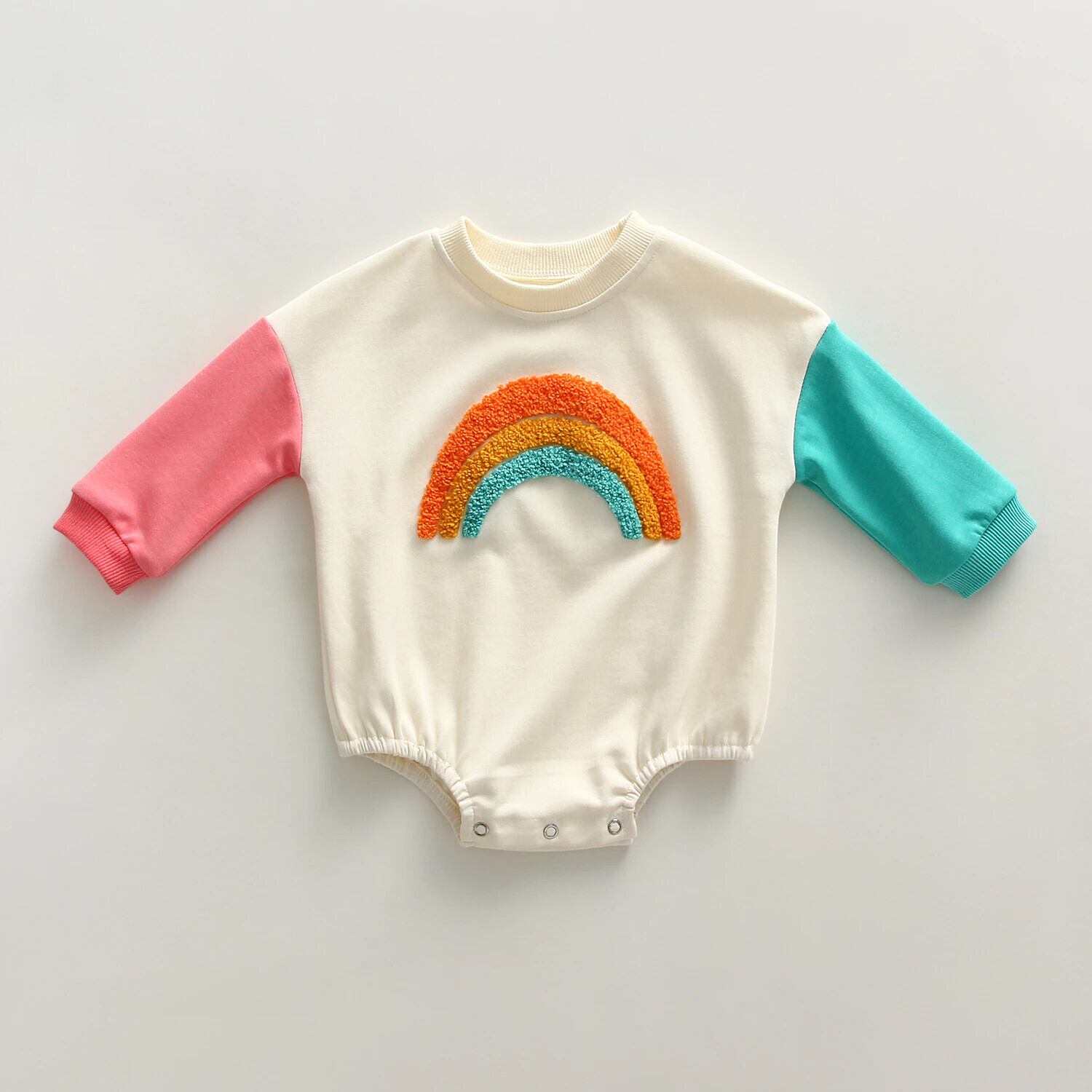 女の赤ちゃん服 レインボー刺繍 女の赤ちゃん ボディスーツ Oネック 新生児 ワンピース 長袖 ベビー 着ぐるみ 女の子 ロング