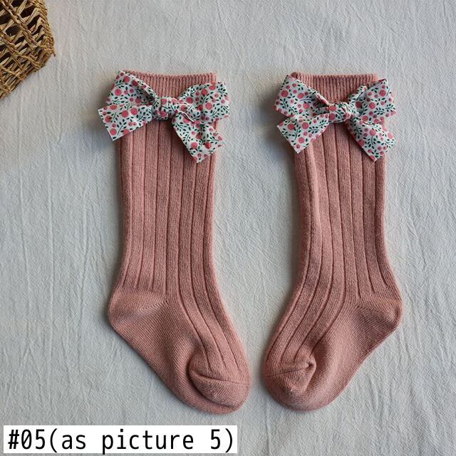 0-5 歳幼児女の子靴下花弓膝ロングソフトコットンベビーソックス剥奪子供靴下スタイル リボン タイツ ストッキング フラワーデザイン