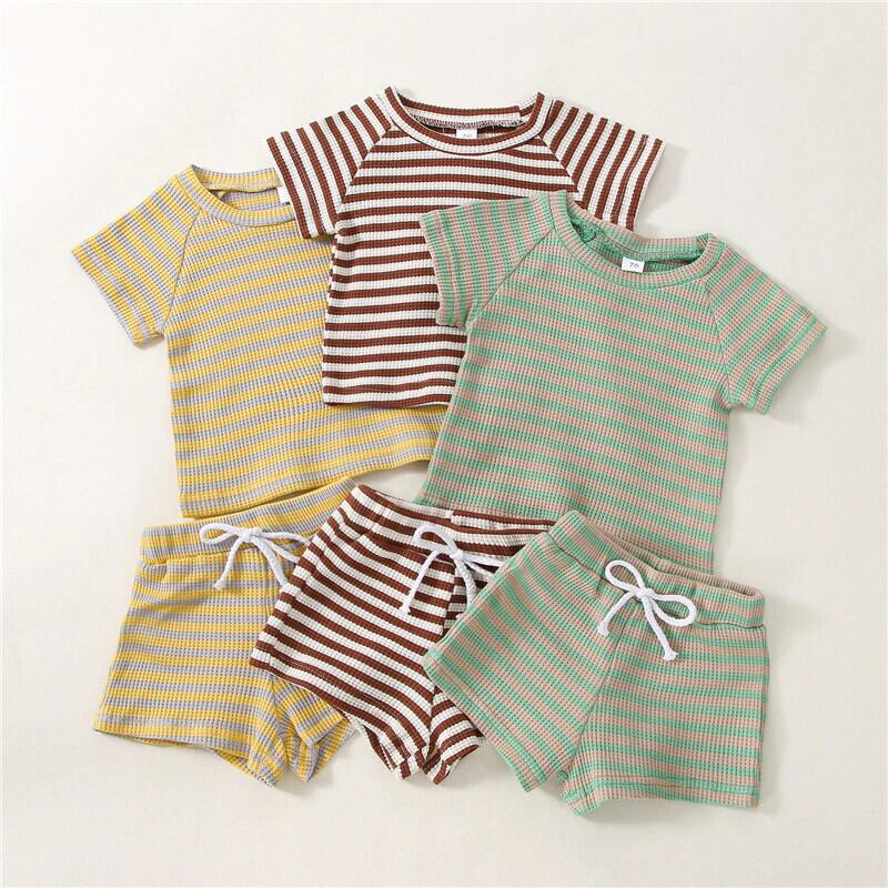 2022 夏 コットン ベビー服 セット 3色 半袖 上着 + ショート 2点 新生児 幼児 ハーフスリーブ サマー 夏物