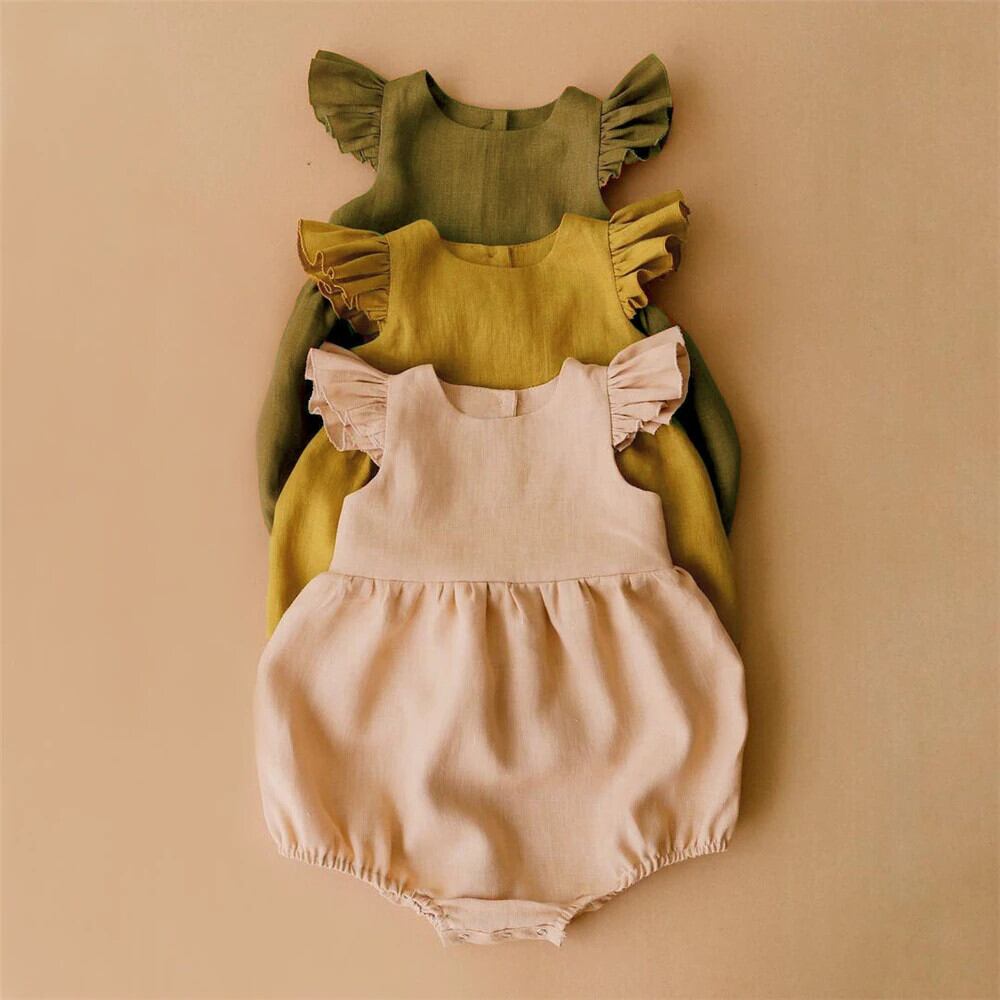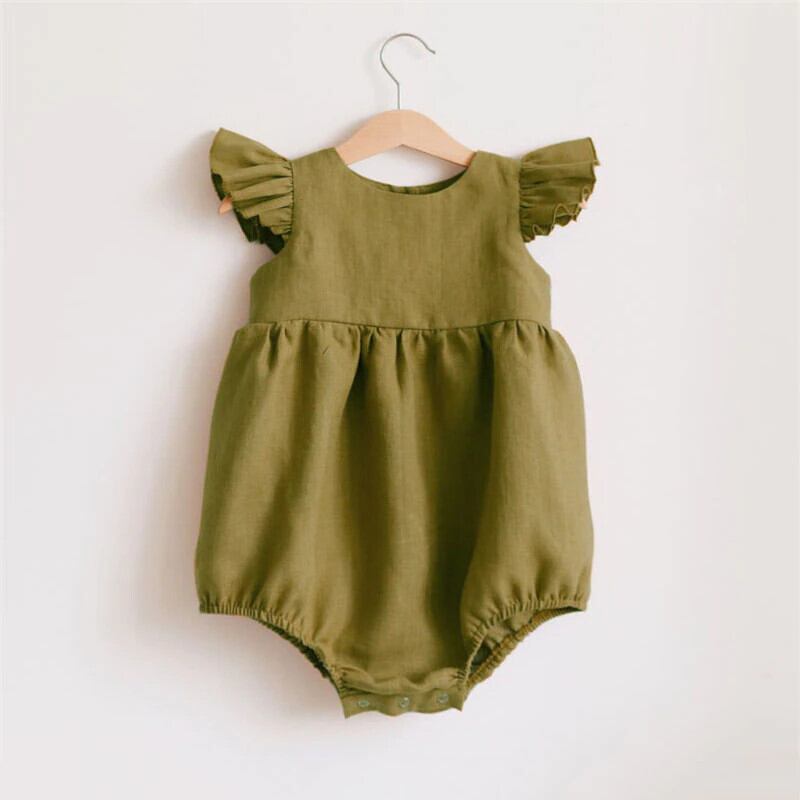 夏の女の赤ちゃんジャンプスーツ 0-18M リネンコットン生まれの女の赤ちゃんロンパース幼児ジャンプスーツサンスーツ夏服衣装 0-18M サマー 夏物