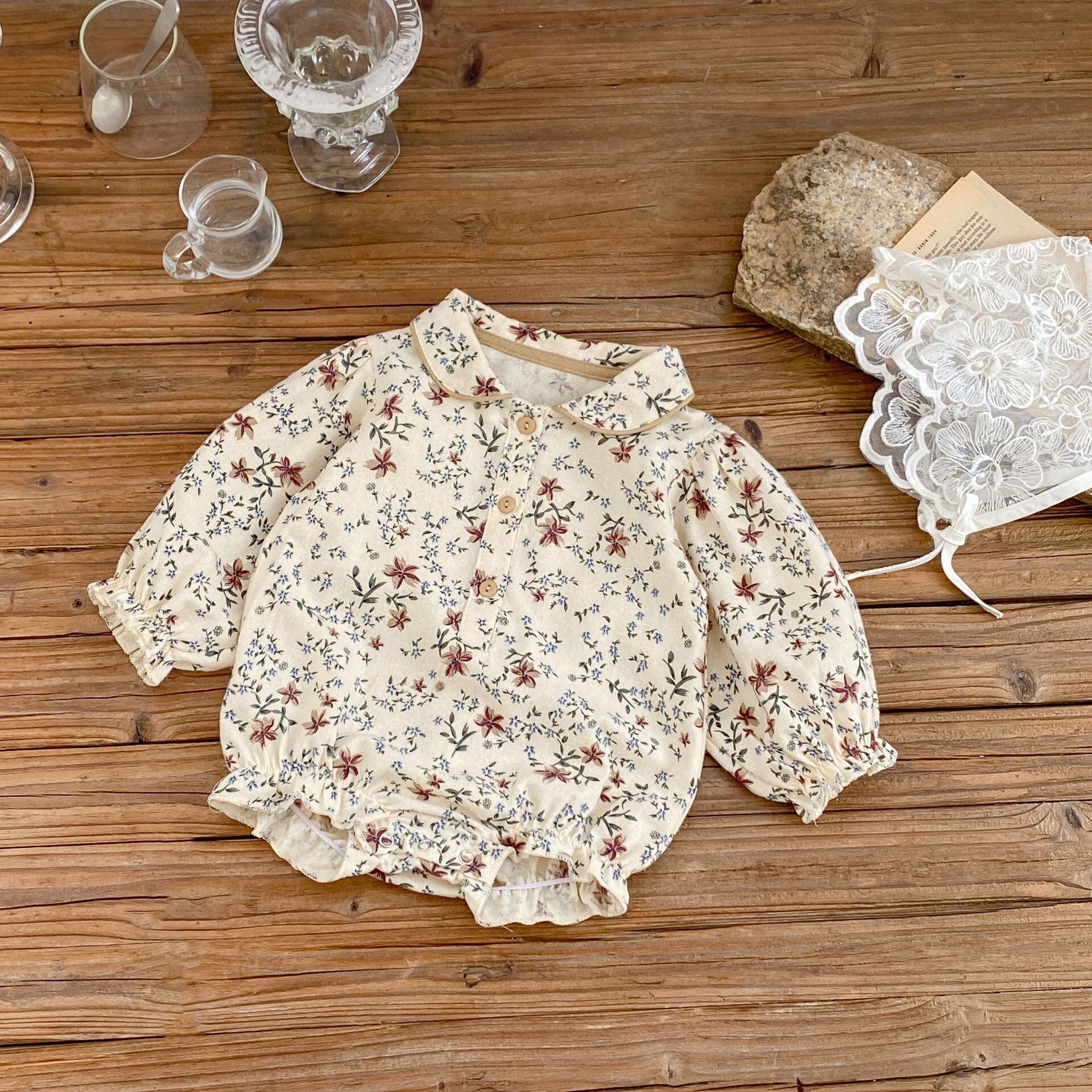 春秋ベビー幼児幼児女の子ジャンプスーツ花柄長袖ボタン付きロンパース ロング スプリング 春物 オータム 秋物