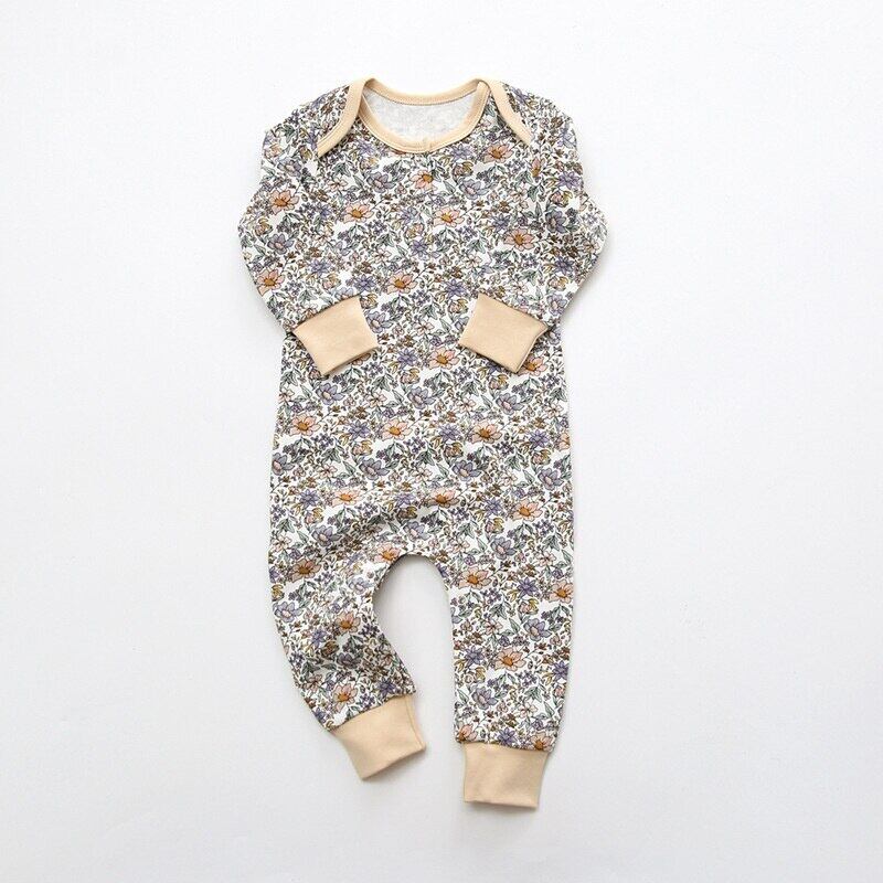 新生児ロンパース長袖オーガニックコットン幼児男の子女の子花柄カバーオール春秋生まれベビー服 ロング スプリング 春物 オータム 秋物