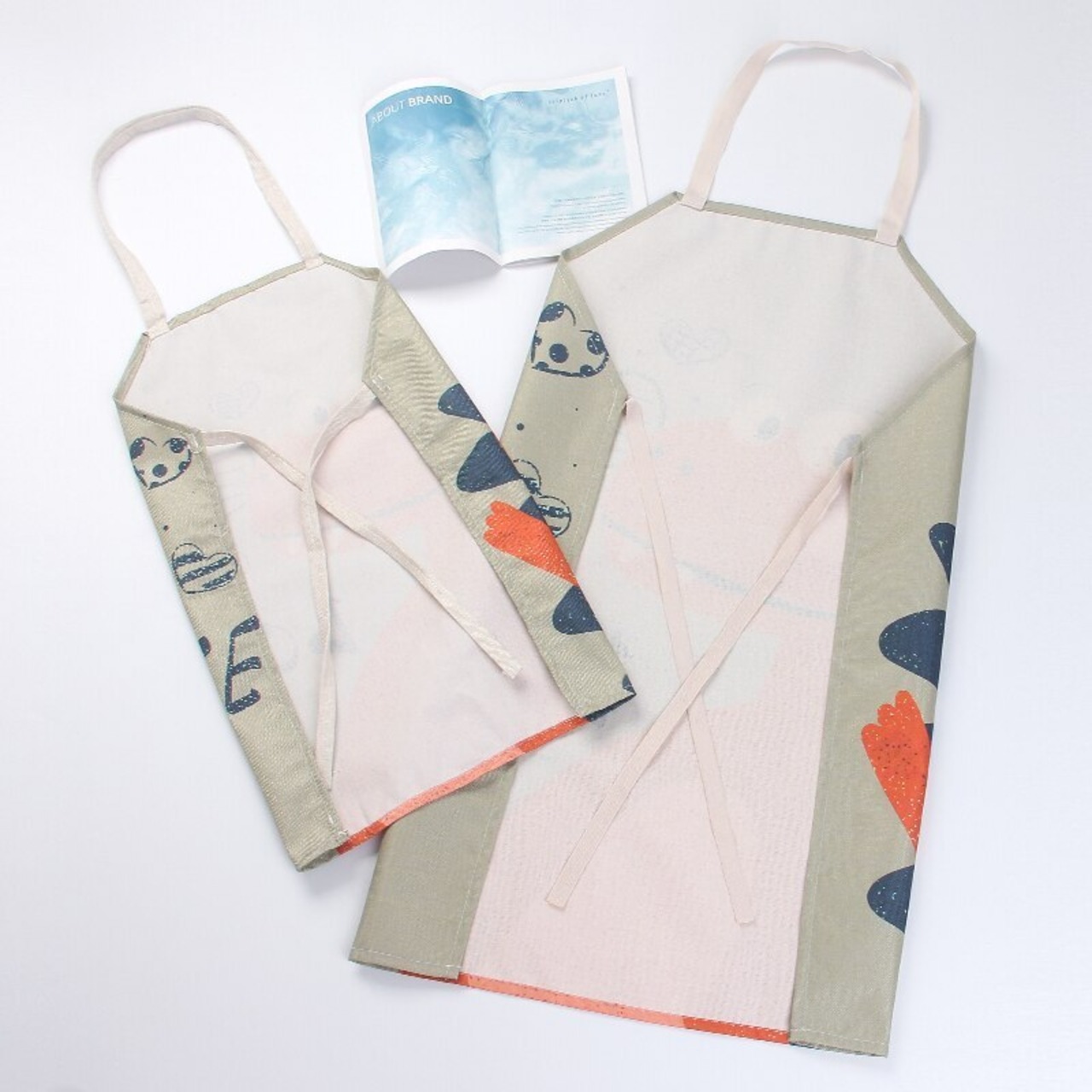 漫画恐竜ファミリーマッチング衣装調節可能なキッチンエプロン防水調理スタッフママ娘服 アジャスタブル