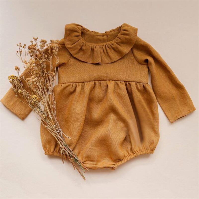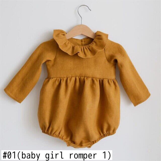 新生児女の子ロンパースリネンコットン長袖無地ベビージャンプスーツベビー服衣装女の赤ちゃん服夏 ロング サマー 夏物 ソリッドカラー