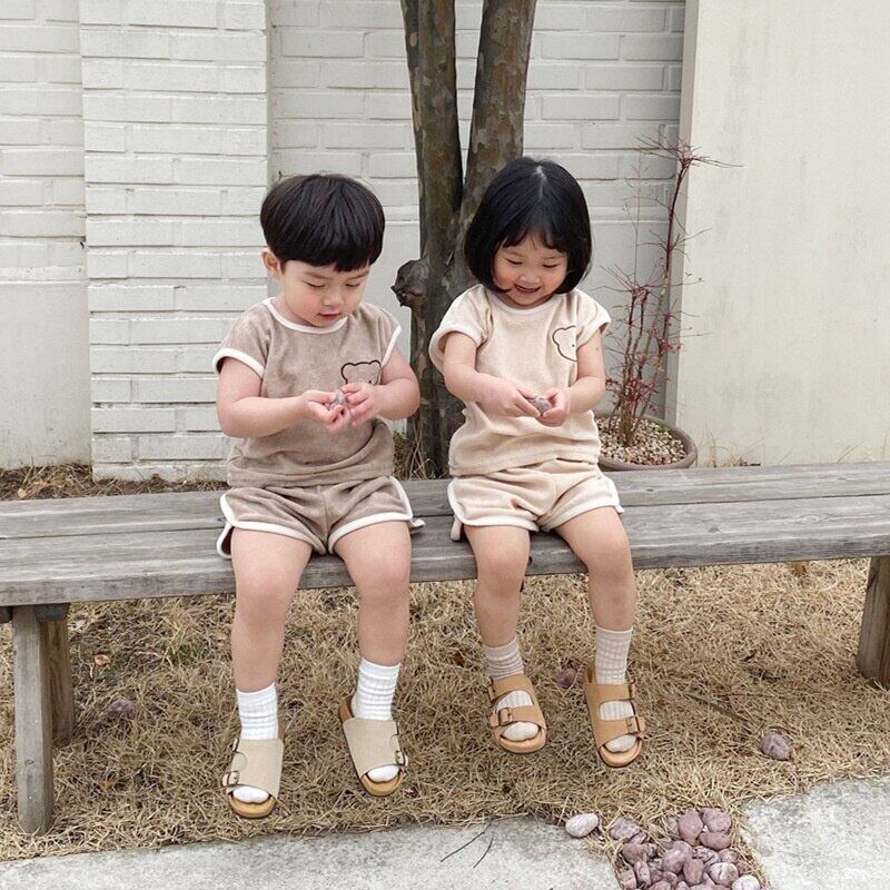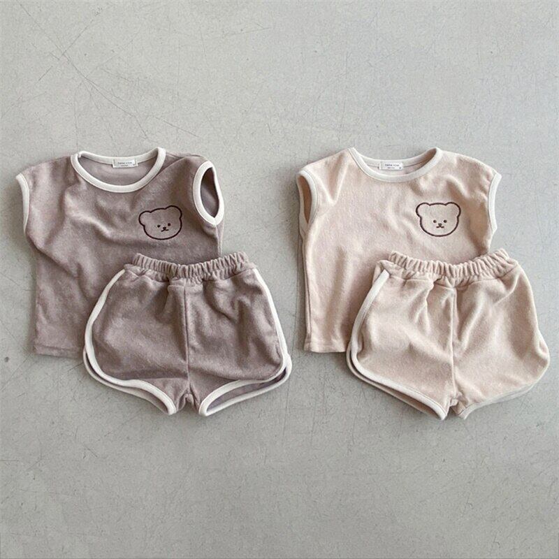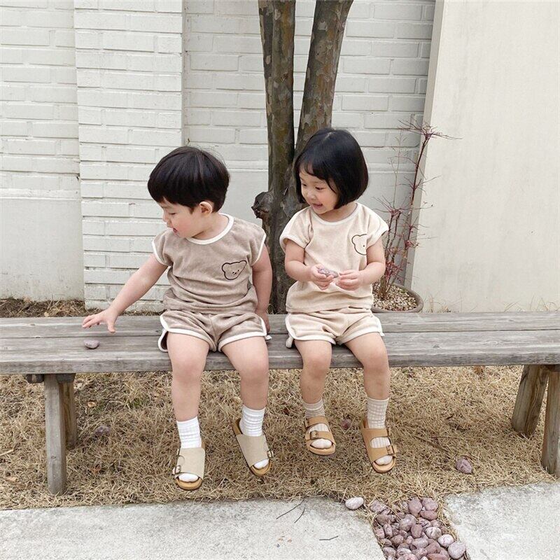 2022 サマーベビーセット ベアプリント ボーイズスーツ Tシャツとショーツ 2点 ベビーガールズセット 0-3歳 夏物 ブルマー