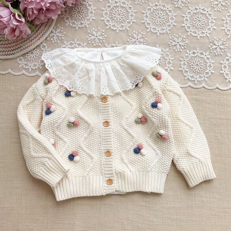 秋冬キッズガールソリッドカーディガン子供甘い白と紫のセーターコート幼児上着服 ホワイト 大人ガーリー スウィート キュート カジュアル オータム 秋物 ウィンター 冬物 ソリッドカラー パープル