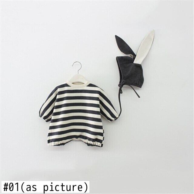 秋のベビーロンパース帽子生まれ少年厚み黒青ストライプベビージャンプスーツ幼児女の子上着冬 ブルー ブラック オータム 秋物 ウィンター 冬物
