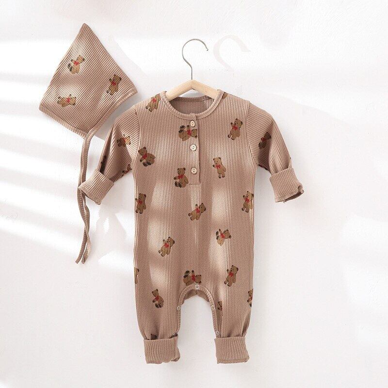 2 個生まれベビーロンパース 0-24M オーガニックコットンベビージャンプスーツ + 帽子秋春冬長袖ベビー少年少女服 ロング スプリング 春物 オータム 秋物 ウィンター 冬物