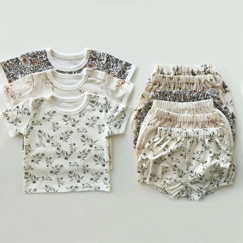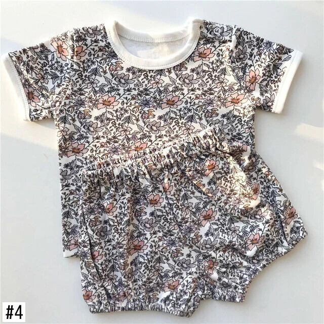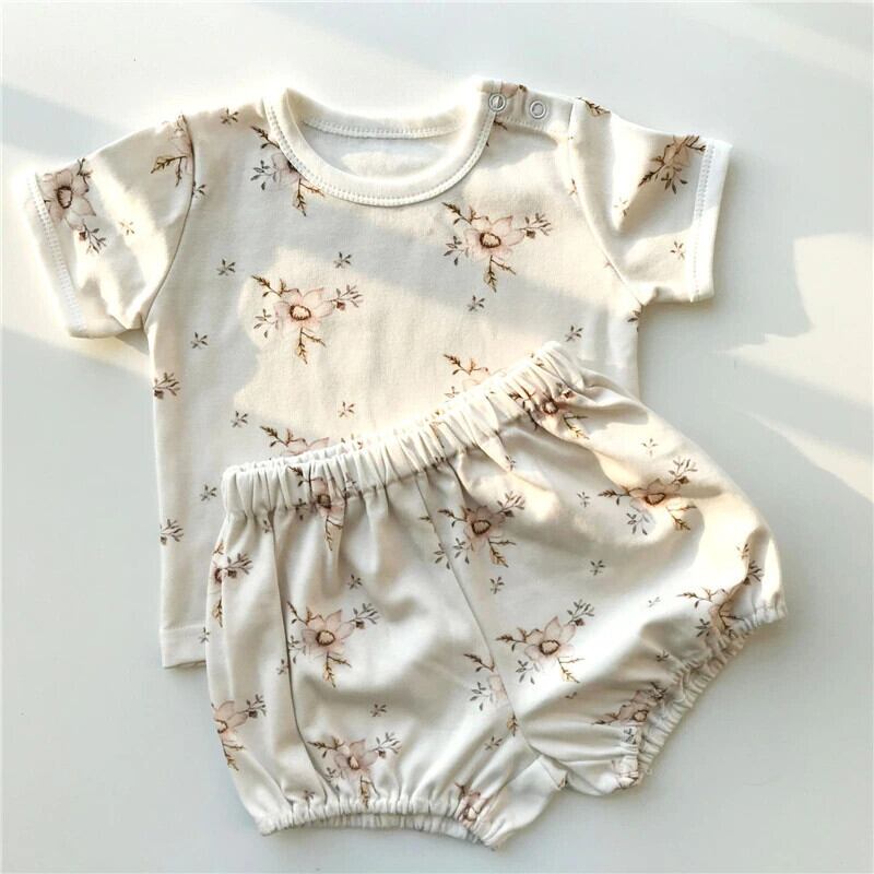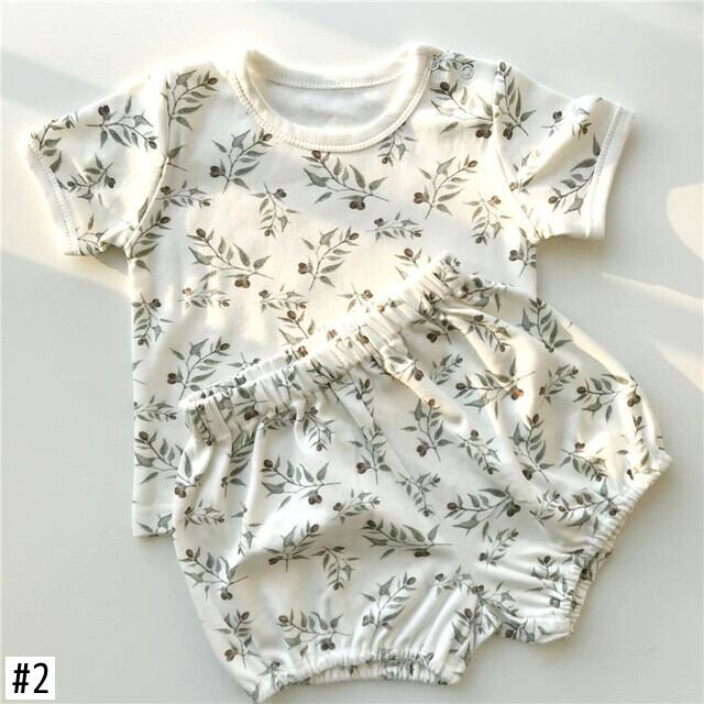 新生児女の子男の子服夏花柄コットンベビー服セット半袖トップス Tシャツ + ショーツ 2 個ベビー衣装 ショート ハーフスリーブ サマー 夏物 ブルマー