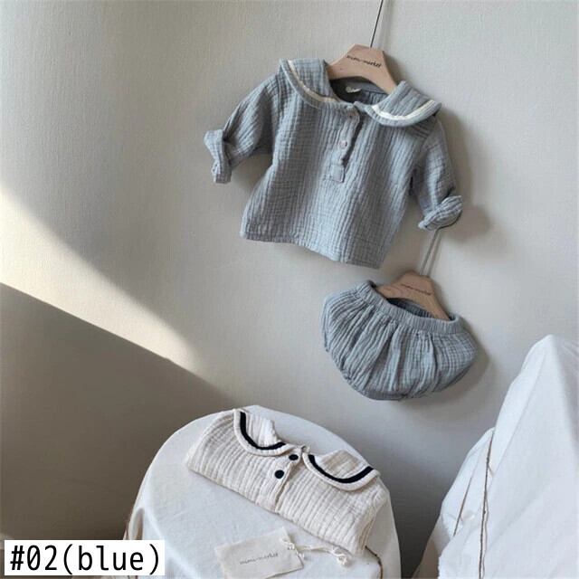 ベビーセット 0-2歳 オーガニックコットン ネイビー 男の子服 シャツ + ブルーマースト 2枚 子供服 ベビー キッズ ショーツ ブルマー