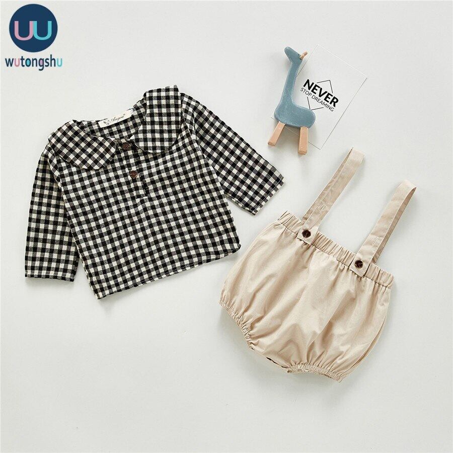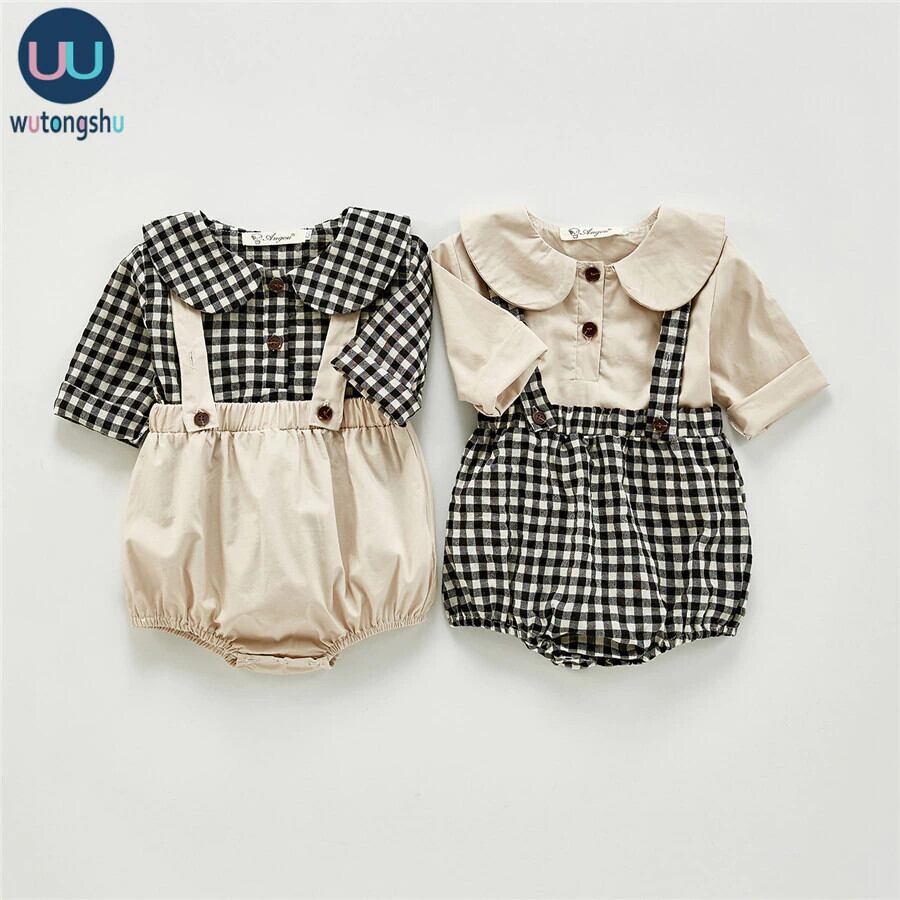 新生児女の子服秋春男の赤ちゃん服セット長袖格子縞のシャツ + オーバーオール子供服幼児 ロング スプリング 春物 オータム 秋物 キッズ