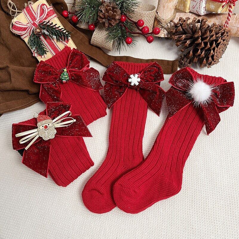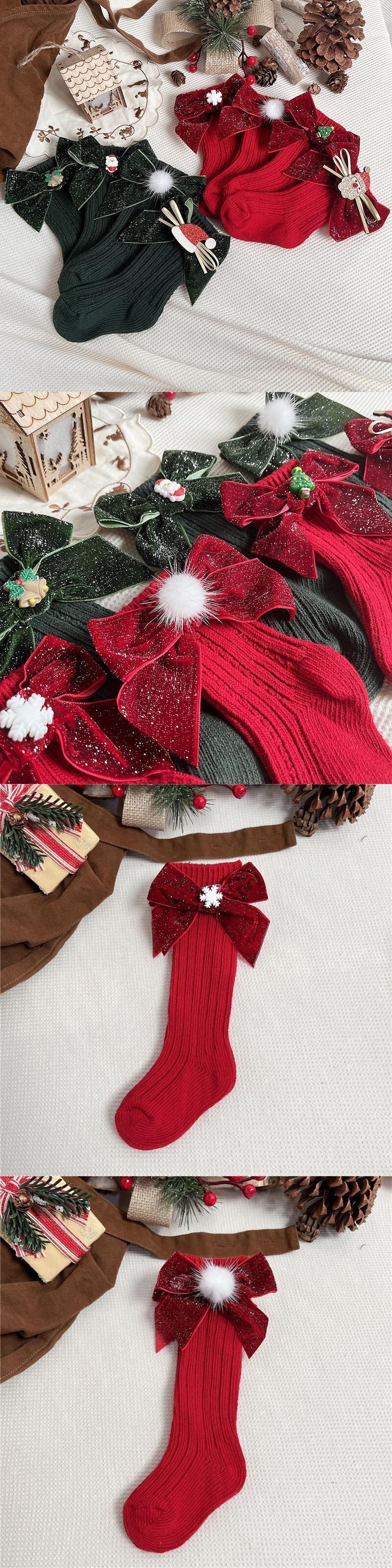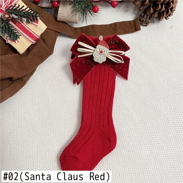 冬の赤ちゃんの女の子の男の子クリスマス靴下子供膝靴下ウールレッグウォーマー子供ソフトコットン赤ロングソックス 0-5Years レッド ウィンター 冬物 キッズ タイツ ストッキング