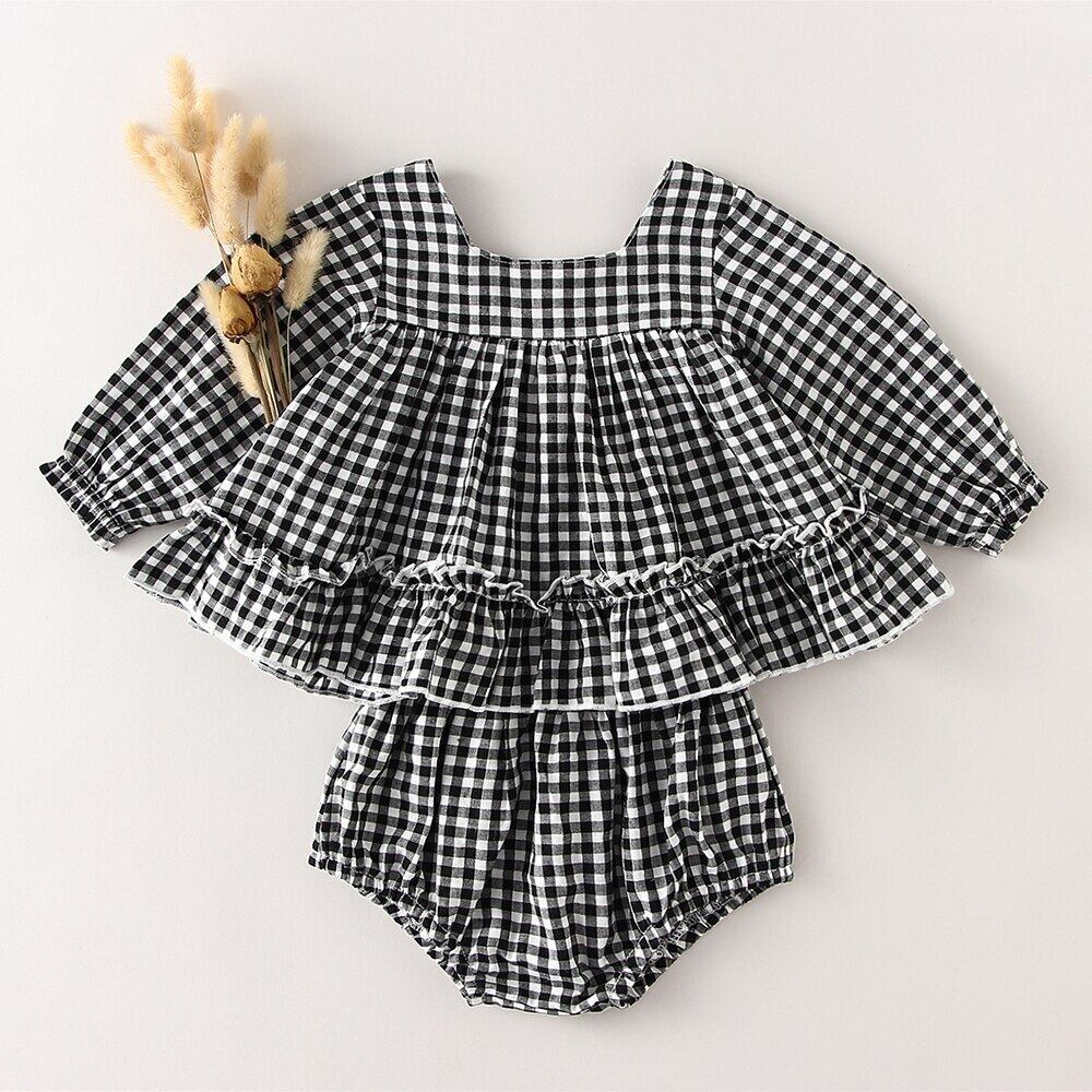 春の女の赤ちゃん綿リネン長袖トップス + ショーツ女の赤ちゃん服セット 0-2Y ロング コットン スプリング 春物 ブルマー