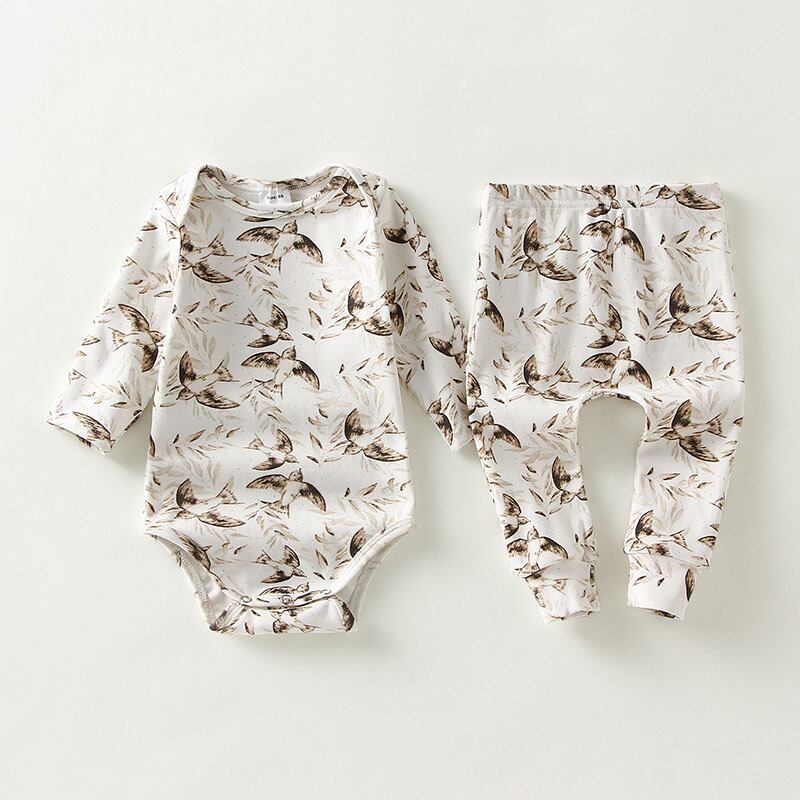 0-24M 新生児男の子女の子服セット秋冬長袖ボディスーツトップス + パンツスーツプリントベビー 2 個ベビーセット ロング オータム 秋物 ウィンター 冬物