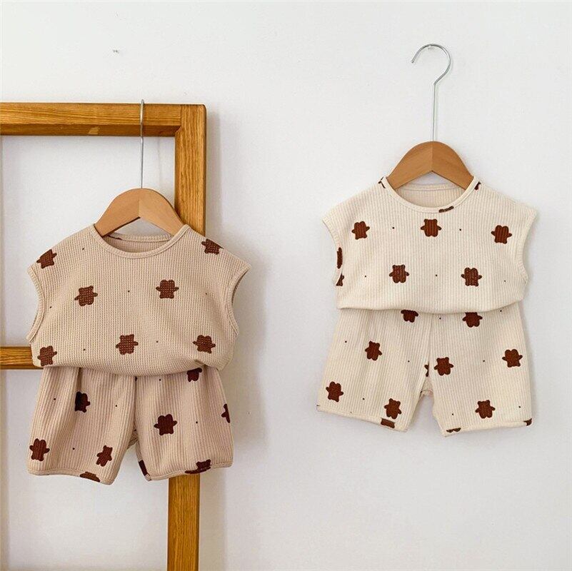夏の赤ちゃん男の子女の子服セット 2 個かわいい綿ノースリーブ子供トップス + ショーツ赤ちゃん幼児服 コットン 大人ガーリー スウィート キュート カジュアル サマー 夏物 キッズ ブルマー