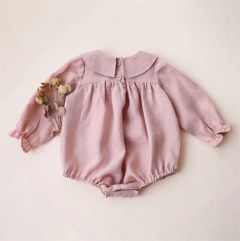 2023 春の女の赤ちゃんボディスーツリネンコットン生まれのベビー服幼児ガールジャンプスーツ スプリング 春物