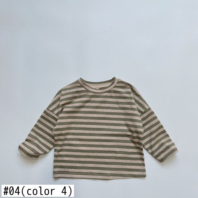 キッズ長袖 Tシャツ子供少年少女ストライプコットントップス春キッズベーシック Tシャツ服 ロング スプリング 春物