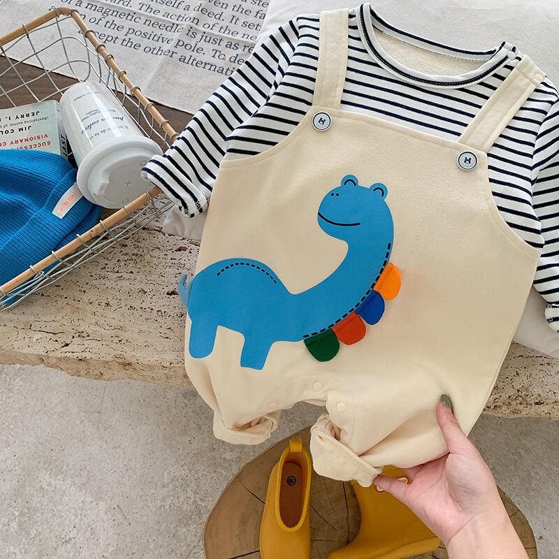 かわいい赤ちゃん男の子女の子ジャンプスーツ生まれ恐竜プリントストライプロンパース春ベビー服 大人ガーリー スウィート キュート カジュアル スプリング 春物
