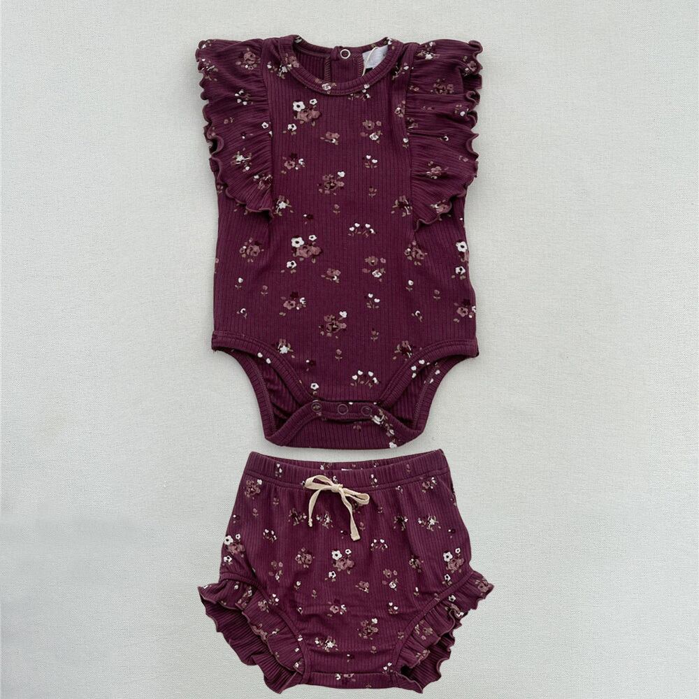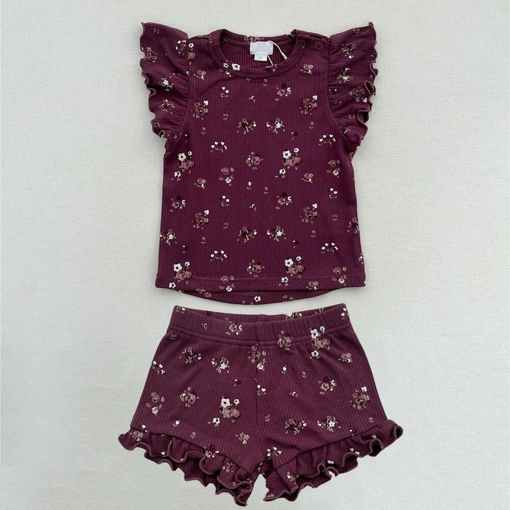 ベビー ガールズ サマーセット 半袖 トップス + ショートパンツ 2点セット 新生児 幼児 キッズ リブ ニット トラックスーツ ハーフスリーブ 夏物