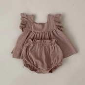 0-32Y 女赤ちゃん服セット ソフト ノースリーブ ブラウス トップス + ショーツ 夏生まれた女子 Outifts サマー 夏物 ブルマー